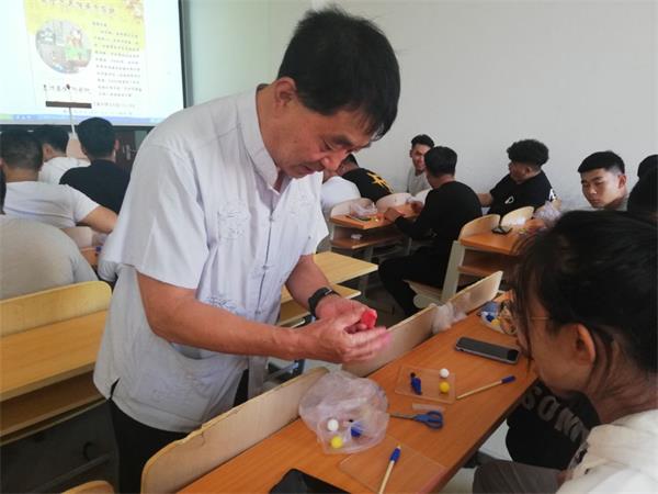刘老师首先讲解了面塑的历史、示范了面塑所用工具的使用方法、传授了面塑的基本要领,接着刘老师现场教授这些零基础的同学们如何制作”鲤鱼跃龙门”的艺术形象。经过一番捏、搓、揉、刻、划。一个栩栩如生的 “鲤鱼跃龙门”形象诞生了。同学们响起阵阵钦佩的掌声。刘老师耐心地对同学进行一对一的指导。五彩的面泥被同学们制成了不同的形象,拥有了生机与灵气。