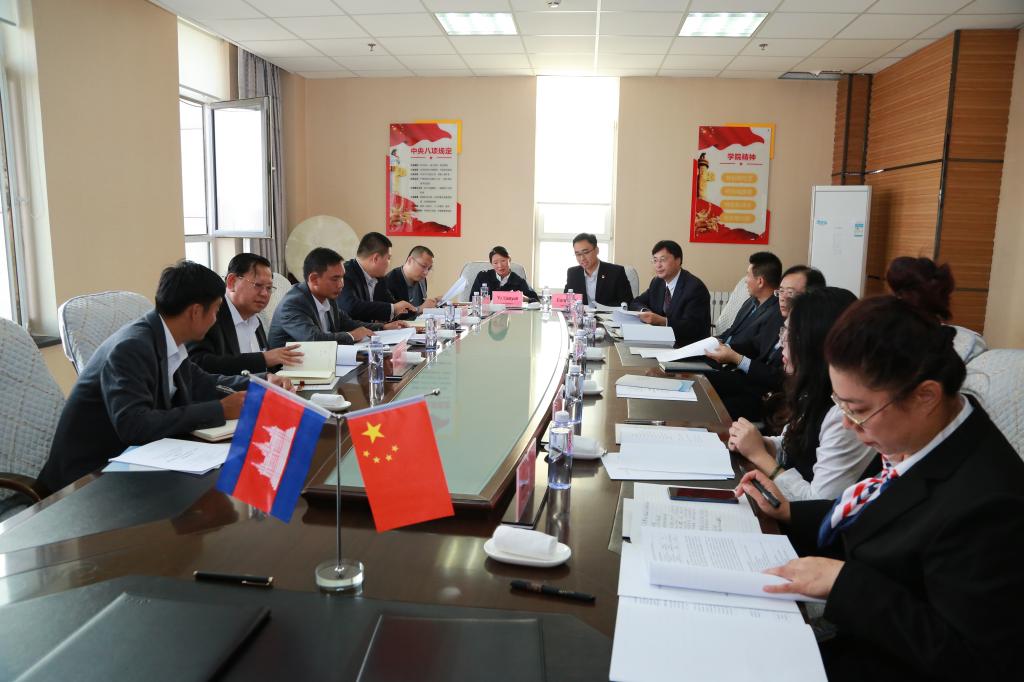 为了深度融入共建“一带一路”,建设开放合作新高地,促进中柬两国人才培养及交流,加快推进柬埔寨压球体育·|(官方)在线官网亚龙丝路学院建设,建成我院第一所海外分校。2019年10月23日下午,柬埔寨贡布地区理工学院、亚龙智能装备集团股份有限公司和压球体育·|(官方)在线官网三方在我院行政中心902会议室举行了中柬职业教育人才培养研讨会暨柬埔寨压球体育·|(官方)在线官网亚龙丝路学院建设工作会议。柬埔寨贡布地区理工学院院长克容·金朗、副校长蔡·卓男、行政办公室副主任本·萨姆洛特,亚龙智能装备集团股份有限公司区域总经理毛卫祥、办公室主任徐伟东,我院党委书记王忠诚、副院长赵景晖及外事办、自控系、基础部等部门领导出席了会议。