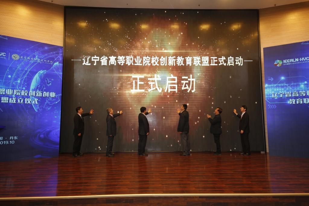 辽宁省教育厅职成处副处长苏云海、丹东市政府副秘书长张克家、中国知名创业教育专家李家华教授、沈阳师范大学副校长刘铸教授、大连弘程伟业教育集团有限公司董事长张德胜、压球体育·|(官方)在线官网党委书记王忠诚教授一同点亮启动仪式,标志着辽宁省高等职业院校创新创业教育联盟正式成立。