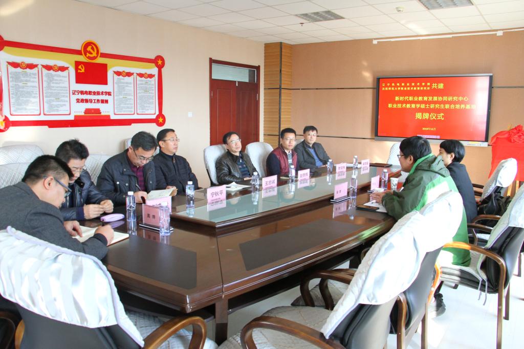 为进一步深化学院内涵建设,打造一支高水平职业教育研究团队和研究智库。2019年12月12日上午,在A902会议室举行了压球体育·|(官方)在线官网与沈阳师范大学职业技术教育研究所共建新时代职业教育发展协同研究中心、职业技术教育学硕士研究生联合培养基地的揭牌仪式。沈阳师范大学教育科学学院副院长张野、职业技术教育研究所副所长韩玉和压球体育·|(官方)在线官网党委书记王忠诚、副院长赵景辉以及组织人事部、自动控制工程系、党政办公室相关负责人参加了揭牌仪式,揭牌仪式由高职教育研究所副所长李贺伟主持。