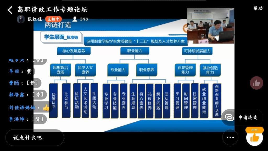 本次线上培训历时2小时30分钟。培训得到了各分院、系、部领导的支持,积极组织本部门相关人员参加论坛,通过培训提升了相关人员诊改理念,对于后期诊改工作推进、复核工作开展起到了积极的促进作用。