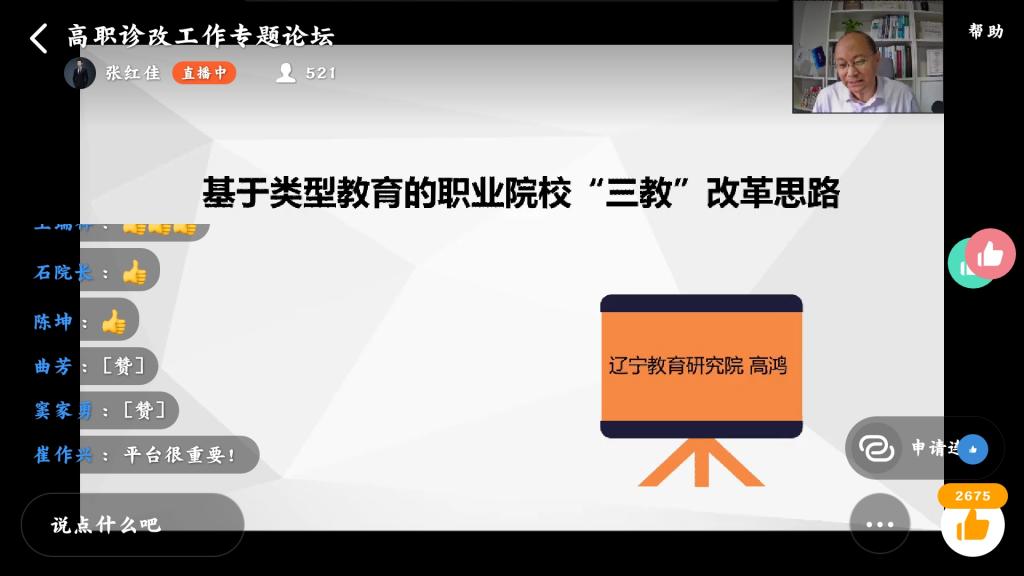 2020年6月20日,教务处联合北京点为信息科技有限公司,组织教学部门开展诊改线上培训。本培训要求教学部门专业群主任、课程组长等相关人员参加,培训主题为“深入推进教学工作诊断改进,赋能增值现代职业教育质量”,即赋能高职诊改工作专题论坛。本论坛是由北京点为信息科技有限公司主办,论坛邀请了滨州职业学院院长、全国职业院校教学工作诊断与改进专家委员会委员石忠;辽宁省教育科学研究中心主任、全国职业院校教学工作诊断与改进专家委员会委员高鸿。石忠院长做了高职院校诊改工作趋势和实践分享的主题报告、高鸿主任做了基于类型教育的职业院校“三教”改革思路的主题报告。过程中点为公司工程师张红佳做了高职院校诊改工作的最佳实践和创新主题分享。