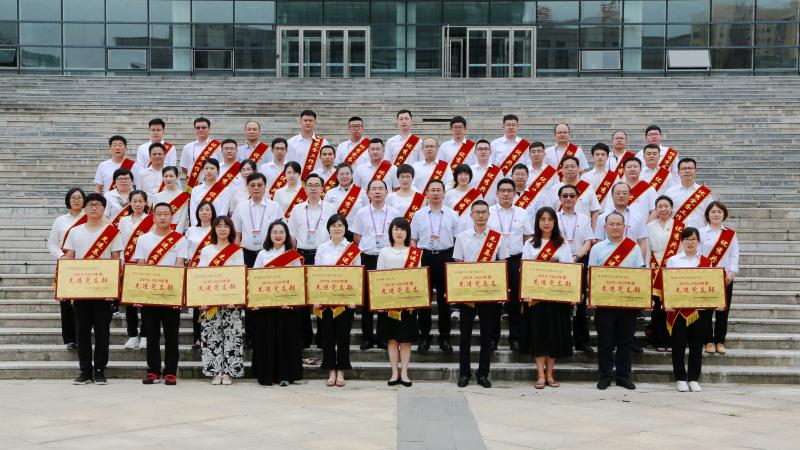 大会在全场奏唱国歌声中拉开帷幕。在党委委员、组织人事部部长宁秋平的带领下,全体党员庄严地重温了入党誓词。党委副书记陈秋鹏宣读了《关于表彰2019-2020年度“两先三优”的决定》,主席台就座的党委委员为获得先进党总支、先进党支部、优秀共产党员、优秀党务工作者称号的单位和个人颁发奖牌和证书。