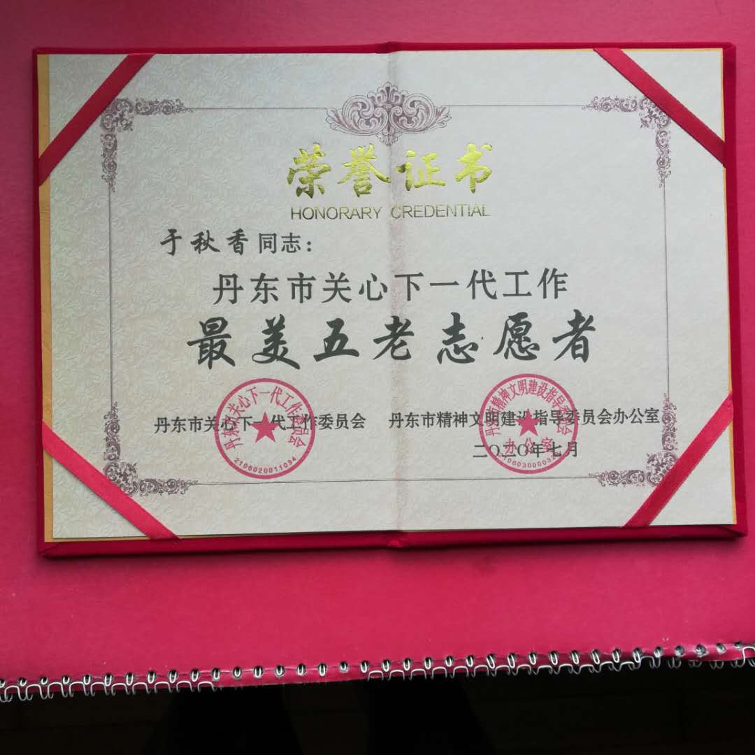 2020年7月17日,由丹东市关心下一代工作委员会组织召开的“纪念丹东市关工委成立三十周年大会”在丹东市鸭绿江大厦顺利举行。会上获悉,我院关心下一代工作委员会办公室主任、退休教师于秋香同志荣获丹东市“最美五老志愿者”荣誉称号。