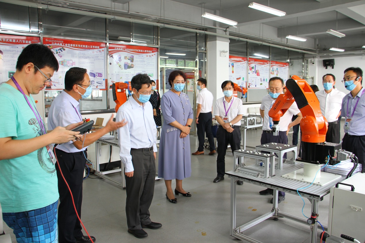 在工业机器人和柔性制造技术创新实训中心,张立林了解到学院不断创新人才培养模式,提高人才培养质量,培养的学生在国际、国内职业技能大赛中多次获奖的时候,他对学院的人才培养模式给予了高度赞扬,并强调人才是未来社会发展竞争的关键,要不断提升学生综合素质,为辽宁振兴发展提供更多的技术技能型人才。