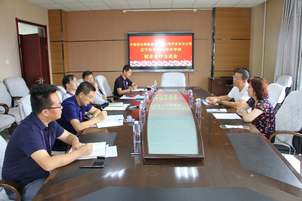 8月31日,中国联合网络通讯有限公司丹东市分公司(以下简称中国联通丹东分公司)副总经理张文宏、人力资源部经理贾春雪一行2人来我院开展校企合作洽谈。学院副院长赵景晖、校企办、自动控制工程系、信息工程系等相关部门负责人参加洽谈会。
