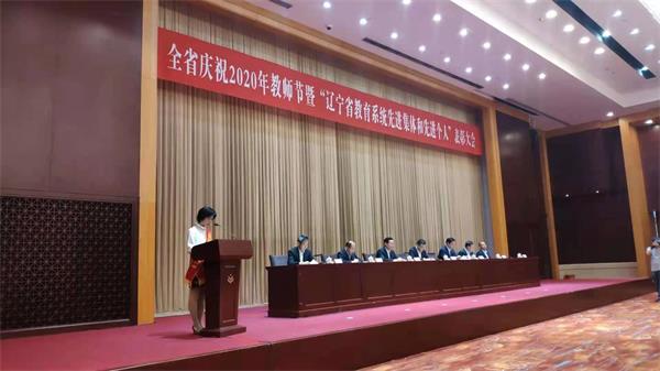 9月9日,潘维琴在“辽宁省教育系统先进集体和先进个人表彰大会”上发言。