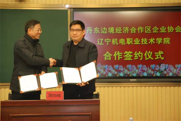 1月8日上午,丹东边境经济合作区企业协会、压球体育·|(官方)在线官网合作签约仪式在我院举行。丹东边境经济合作区企业协会会长刘文磊、名誉会长董青云、副会长刘海波等相关工作人员出席签约仪式;我院党委书记王忠诚、院长于宏国、副院长赵景晖及学院校企办、自控系、仪表学院、机械系、双创学院等部门负责人共同见证了此次签约,仪式由赵景晖主持。