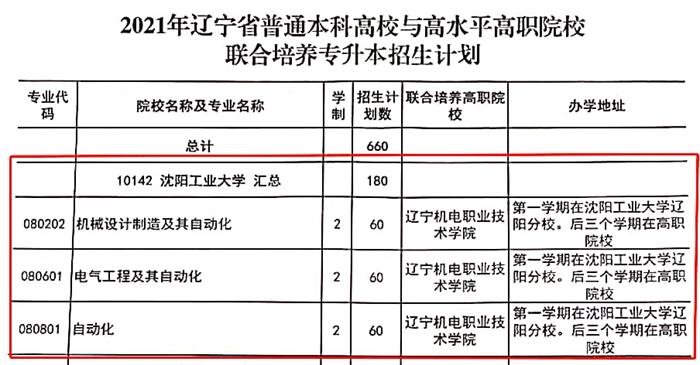 2021年,我院将与沈阳工业大学联合培养电气工程及其自动化、自动化、机械设计制造及其自动化三个专业的本科人才,每个专业计划招生60人。