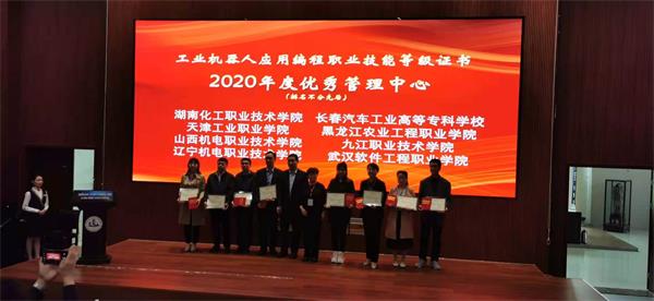 机器人应用编程1+X试点工作总结交流会议于4月24日在无锡职业技术学院召开。北京赛育达科教有限公司公布了该证书试点工作先进个人和优秀单位,我院荣获优秀试点单位、优秀考核管理中心,自控系副主任姜伟荣获先进工作个人,夏金伟、时佳老师荣获优秀考核师称号。