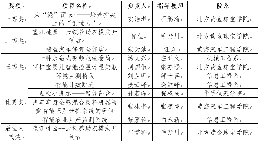 同时,北方黄金珠宝学院石鹃瑜、黄海汽车工程学院汪洋荣获优秀指导教师奖,黄海汽车工程学院获最佳组织奖。