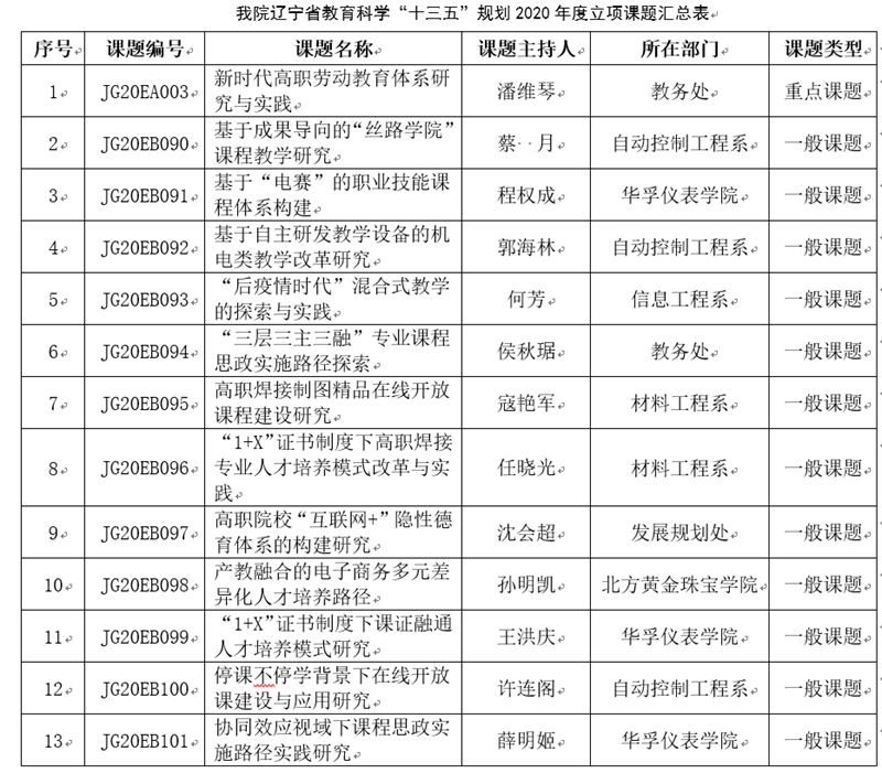 此次立项,是学院高职教育研究所根据辽宁省教育科学规划领导小组办公室印发的《关于申报辽宁省教育科学“十三五”规划2020年度立项课题的通知》(辽教科规办字[2020]9号)相关要求组织申报,辽宁省教育科学规划领导小组组织专家本着公正公平、择优立项的原则评审出立项课题。