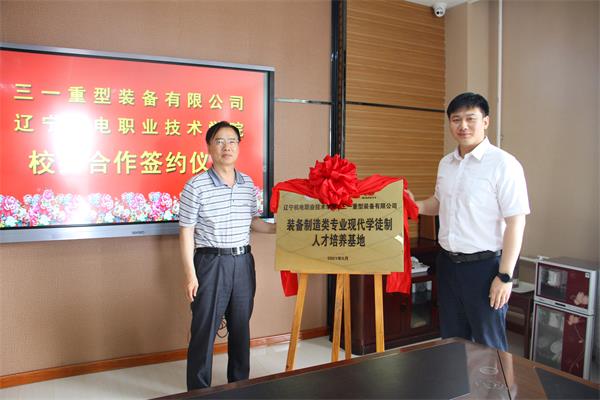 随后,校企双方签订校企合作协议,共同为“辽宁机电——三一重装”装备制造类专业现代学徒制人才培养基地揭牌。