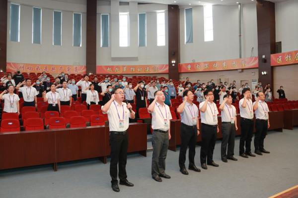 副院长宁秋平领誓《人民教师誓词》,全体参会教职员工举起右拳,集体庄严宣誓,重温誓词。