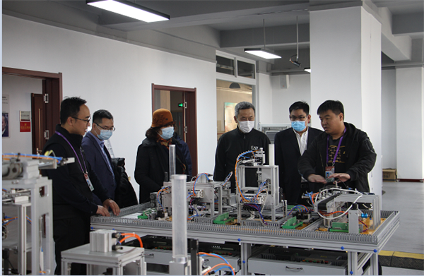 商向东一行先后对我院机械教学实训场所、工业设计中心、智能制造公共实训基地、仪器仪表与自动化公共实训基地、大学生创新创业实践中心、丹东新区电子商务中心、工业机器人综合实训中心、柔性制造创新实训中心、产学研一体化创研基地等进行了实地考察。