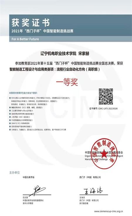 11月7日到15日,教育部2021年第十五届“西门子杯”中国智能制造挑战赛全国总决赛在线上落下帷幕。压球体育·|(官方)在线官网华孚仪表学院学生王宇博,宋家赫、刘瑞、刁林科、陈光浦、张株溪、闻英博在教师马哲、孟冉的指导下荣获大赛一等奖;学生魏忠伟,甘富豪、秦文来、石程、朱政权、郭嘉垚、庞博、吴金新、孙帅、张嘉禧、梅得利、郑宪舣在教师薛明姬、张雯雯的指导下荣获大赛一等奖;学生王浩宇、孙明扬、王思源、牛志远、赵家兴在教师宋艳丽的指导下荣获大赛一等奖。