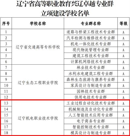 辽宁省高等职业教育兴辽卓越专业群立项建设学校名单