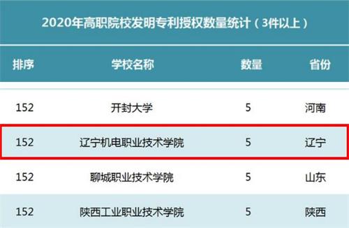 1月,高职发展智库发布《2020年全国高职院校发明专利授权排行榜》,对2020年全国高职院校发明专利授权数量进行统计分析,我院继2019年后再次荣登辽宁省高职院校首位。