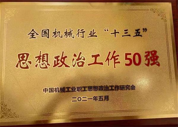 中国机械工业职工思想政治工作研究会授予我院全国机械行业“十三五”思想政治工作50强荣誉称号