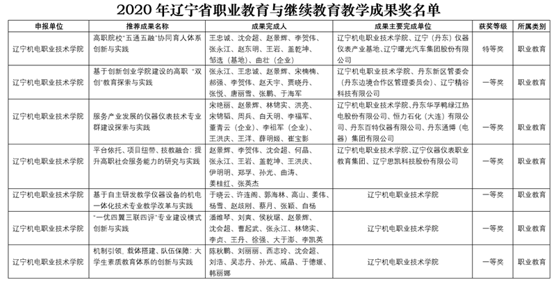 4月30日,我院教师荣获辽宁省职业教育教学成果奖特等奖1项、一等奖6项。