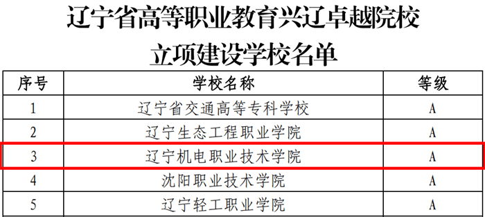 辽宁省高等职业教育兴辽卓越院校立项建设学校名单