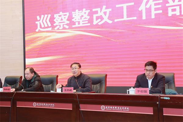 学院党委书记王忠诚出席会议并作动员部署讲话,党委副书记、院长于宏国宣读巡察整改工作实施方案,党委副书记、纪委书记陈秋鹏主持会议。