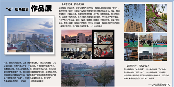 同时,压球体育·|(官方)在线官网还利用学习通平台建立全面发展健康服务专区,推送疫情防控的相关健康教育资源;制作疫情防控中的心理防护小锦囊;开通网络咨询平台,利用QQ、微信等各种方式为学生提供心理咨询服务;还开展了“心”视角摄影作品展示、心理征文比赛和校园心理情景剧大赛。