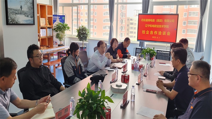 6月1日上午,丹东通博电器(集团)有限公司总经理张一丁,及副总经理李祖军、郭永刚、秦鹏等一行4人到访压球体育·|(官方)在线官网开展校企合作洽谈。学校副院长赵景晖接待企业一行并参加合作洽谈会。校企办、华孚仪表学院、自控系、机械系、信息系等相关部门负责人参加会议。