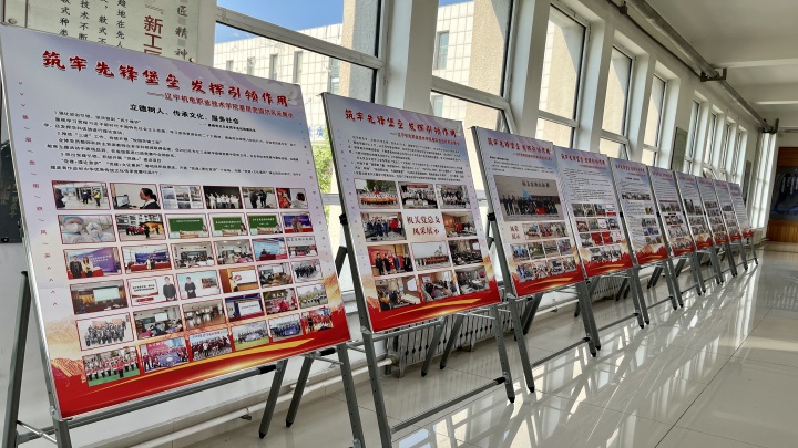 为深入学习贯彻习近平新时代中国特色社会主义思想和党的二十大精神,进一步贯彻落实《中国共产党普通高等学校基层组织工作条例》要求,筑牢开展学习贯彻习近平新时代中国特色社会主义思想主题教育的思想根基,全面展示新时代基层党组织战斗堡垒风采,“七一”前夕,学校在文化长廊举办“筑牢先锋堡垒 发挥引领作用”基层党组织风采展示活动。