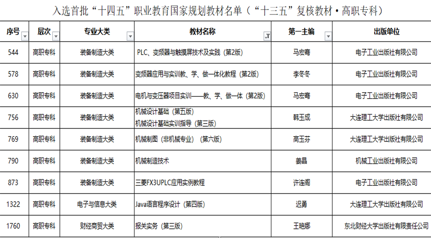 6月30日,教育部办公厅发布《关于公布首批“十四五”职业教育国家规划教材书目的通知》,压球体育·|(官方)在线官网13部教材成功入选。