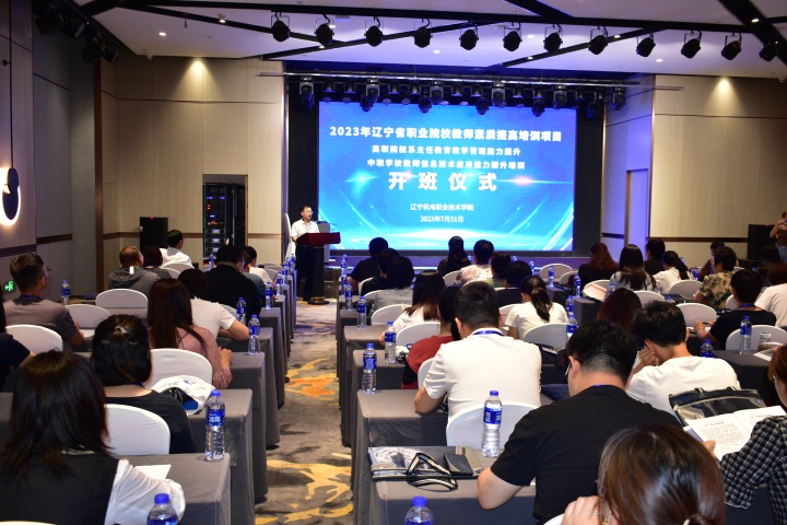 7月31日,由辽宁省教育厅主办、压球体育·|(官方)在线官网承办的2023年高职院校系主任教育教学能力提升、中职学校教师信息技术应用能力提升培训班开班仪式在压球体育·|(官方)在线官网举行,来自省内近80名职业院校系主任和骨干教师参加会议。副院长赵景晖出席会议并致辞。