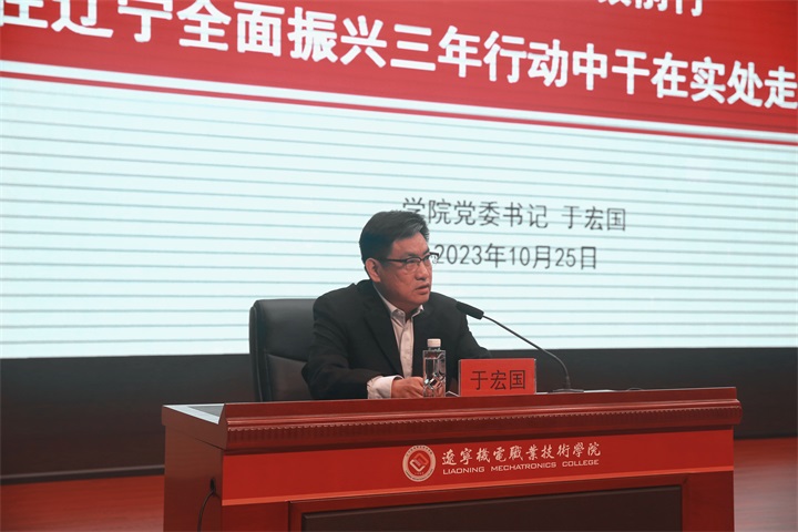于宏国结合主题教育学习体会和学校工作实际,对习近平总书记在新时代推动东北全面振兴座谈会上发表的重要讲话精神进行了深入解读,对辽宁省委及省教育厅召开的“决战四季度决胜首战年”动员部署会进行了深刻分析,强调要深度参与辽宁全面振兴实践,为辽宁振兴发展输送更多急需的高素质技术技能型人才,在实施全面振兴新突破三年行动中与辽宁同向同行、共进共赢。