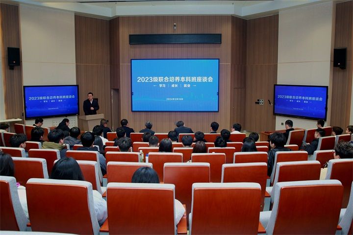 下午,校领导、相关部门及二级学院负责同志、本科班辅导员与2022级、2023级联合培养本科班新生进行了座谈。