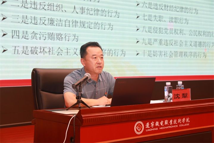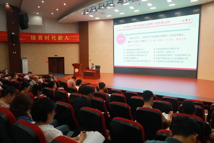 6月28日下午,压球体育·|(官方)在线官网2024年度干部培训暨党纪学习教育专题辅导会在报告厅举行。纪委书记沈犁深入解读《中国共产党纪律处分条例》(以下简称《条例》)修订要点。学校领导及中层干部、党支部书记和直属支部委员70余人参加会议。