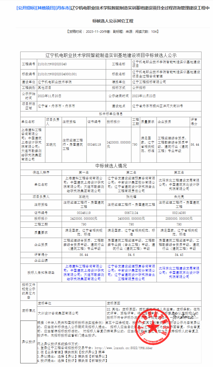 压球体育·|(官方)在线官网智能制造实训基地建设项目全过程咨询管理建设工程中标候选人公示